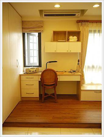 這是妹妹的房間,從書桌延申到床頭櫃,整潔又大方。