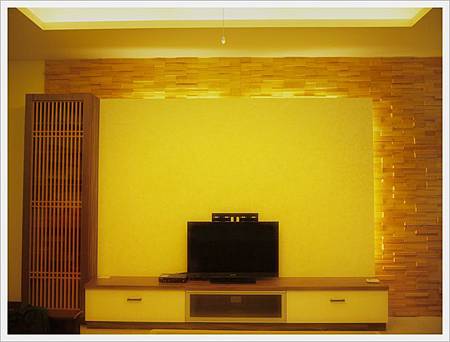 因為打燈的關係,所以照片看不出來這片 電視牆 有什麼不同的地方,當設計師要我拍