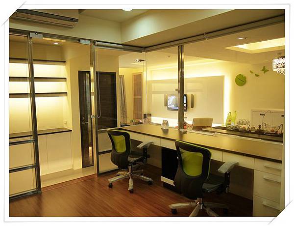 從裡面看到外面,這顏色真是配的好!!地板、書桌、玻璃房~你們是不是也這樣覺得?