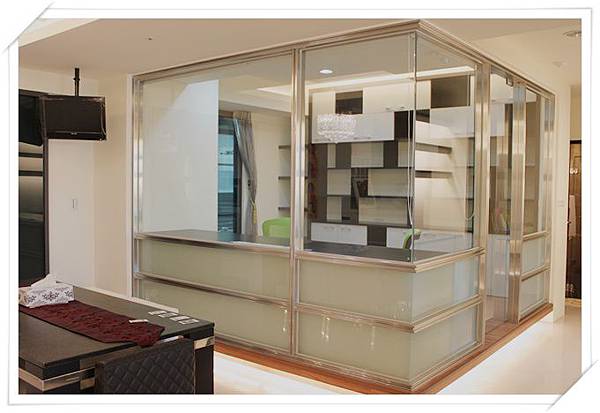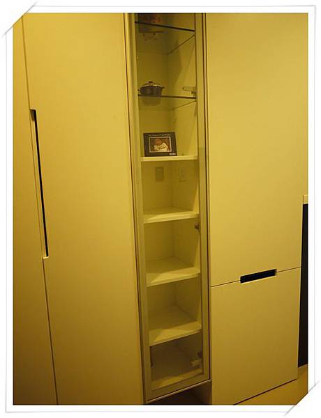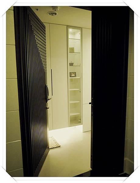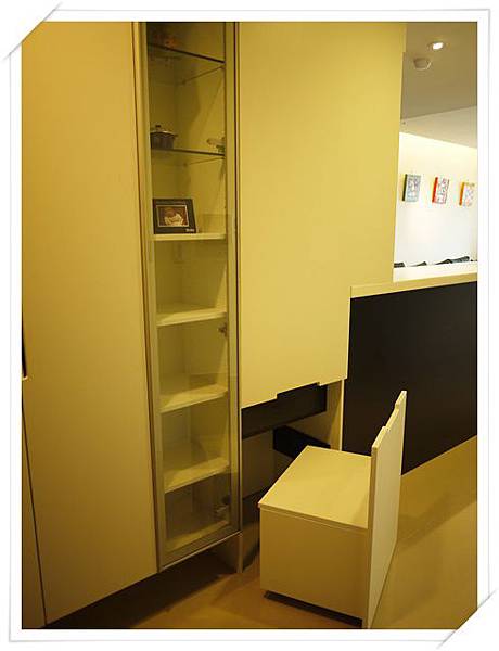 入門進嚕!!咦~~是鞋櫃!!好特別。中間還設計夾鋁框玻門,可以一些小擺飾,恩...有品味!!