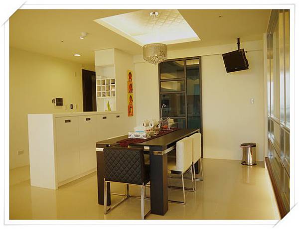 接著是廚房餐桌,廚房是設計在黑色小玻門後面做隱藏式。