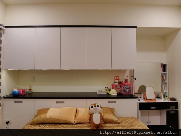 床在櫃子前方就不會影響到櫃子開門了!